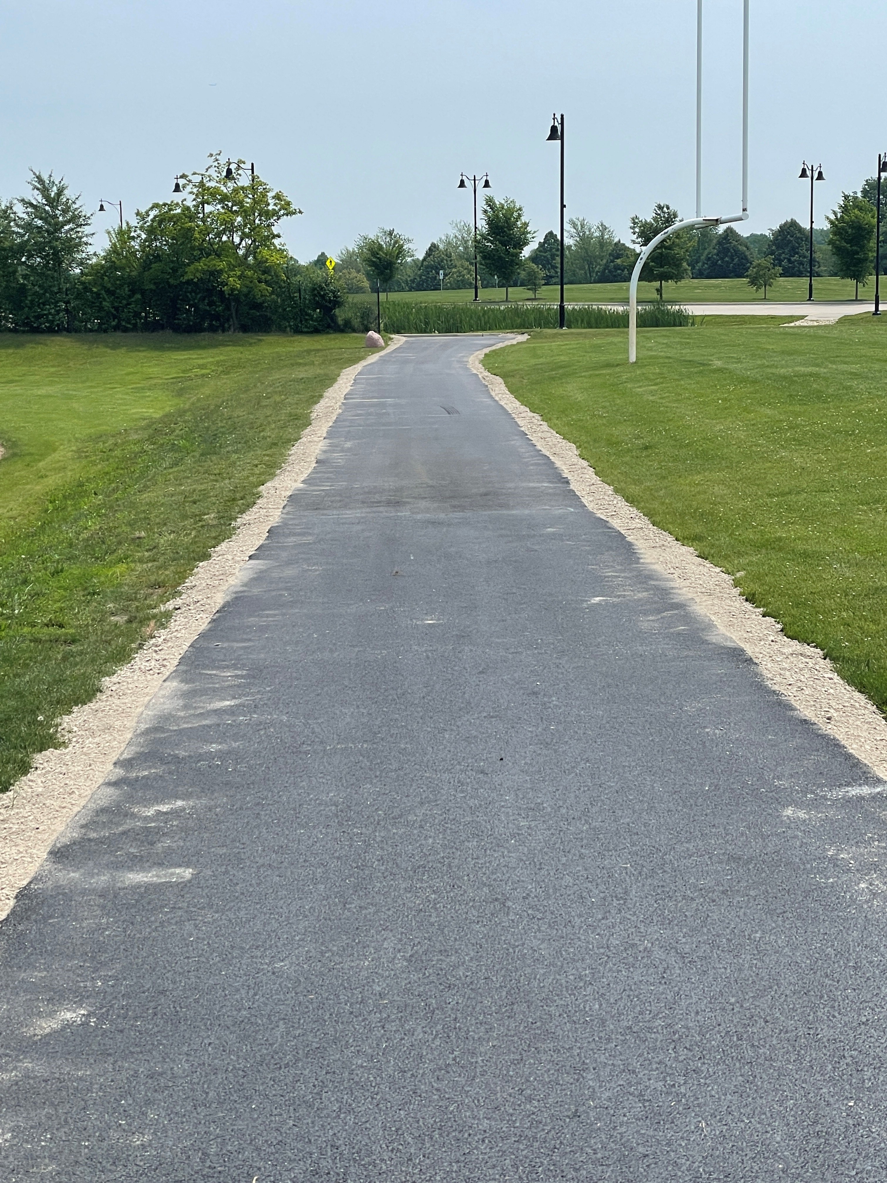 The Mike DeVivio Memorial Path has been given new freshly laid asphalt and trimmed out in stone for the pedestrians who utilize it. It adds a nice feature to the already nice parks we currently have and will offer strollers, wagons, bikes and pedestrians alike a smoother alternative to stone. See pictures below.